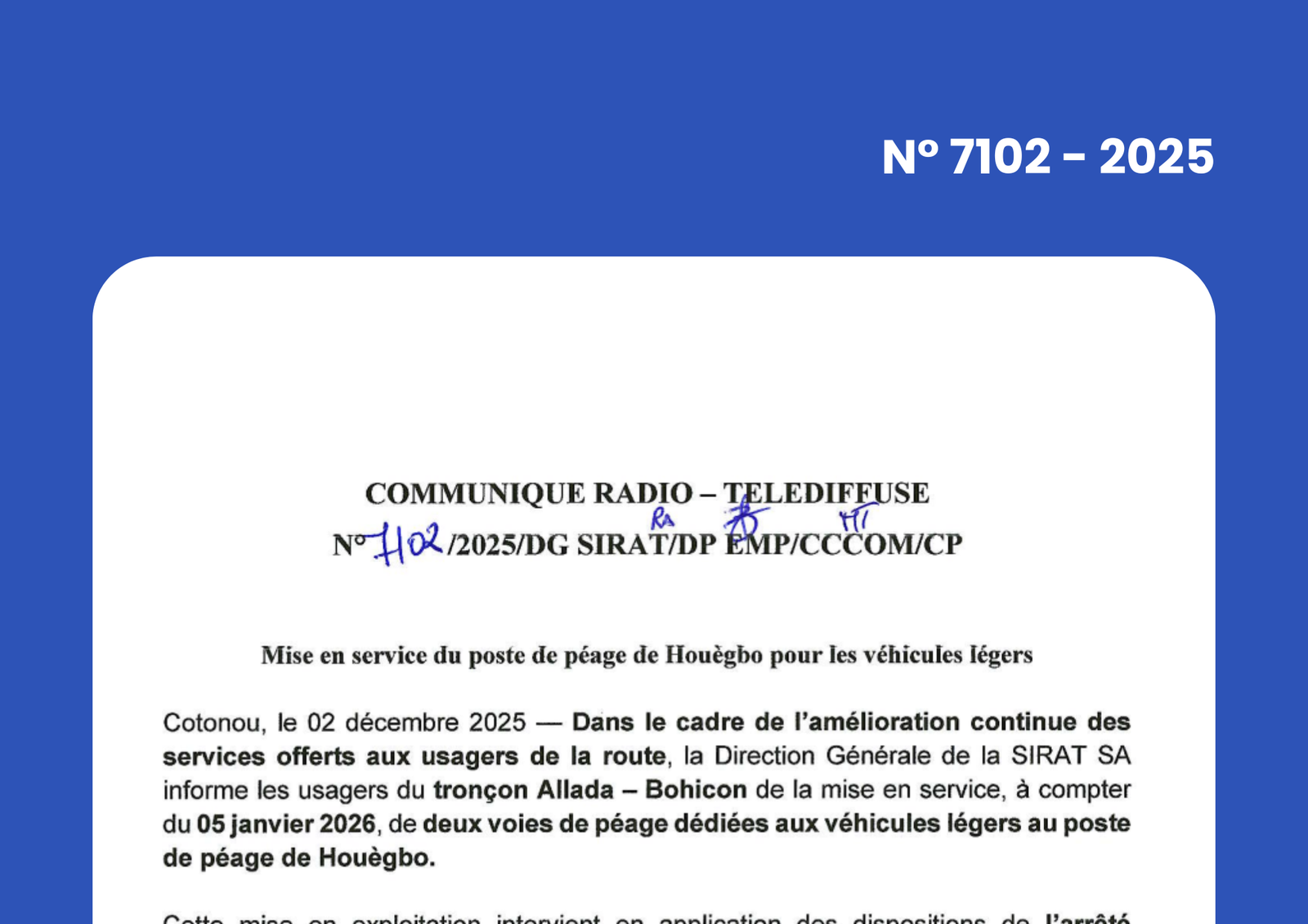 Communique Radio Telediffusé SIRAT - numero 7102 de 2025